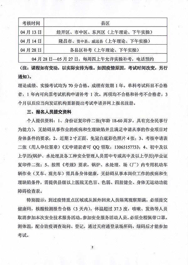 2022年春生公司02期特種設(shè)備作業(yè)人員考核時間安排