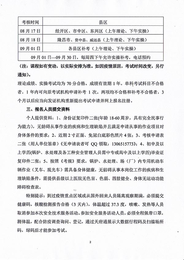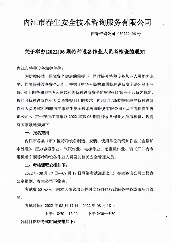 2022年春生公司06期特種設(shè)備作業(yè)人員考核時(shí)間安排