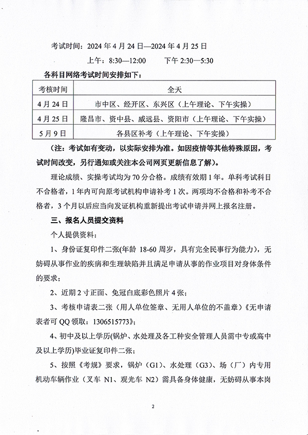 關(guān)于舉辦內(nèi)江市、資陽(yáng)市(2024)02期特種設(shè)備作業(yè)人員考核班的通