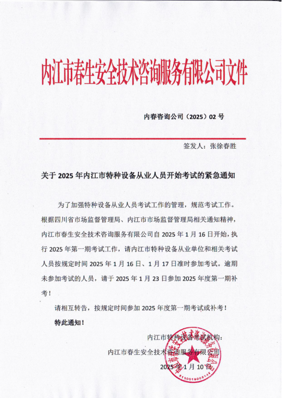 關(guān)于2025年內(nèi)江市特種設(shè)備從業(yè)人員開始考試的緊急通知