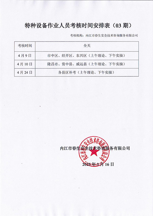 2025年春生公司第3期特種設(shè)備作業(yè)人員考核通知